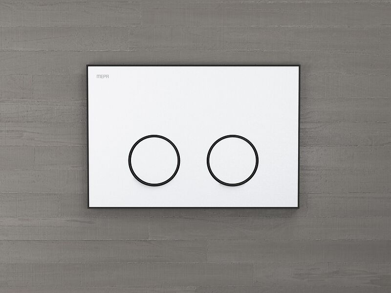 Die Betätigungsplatte MEPA Zero besticht durch ihr zeitloses Design, das elegant umgesetzt und auf das Wesentliche reduziert ist. Der zentrale Chromring unterstreicht die geometrische Formgebung – charakteristisches Merkmal ist ein innovatives Bedienkonzept, das bei der WC-Betätigung die Wahl der kleinen und großen Spülmenge mit nur einer Taste ermöglicht.